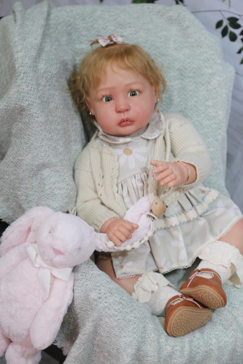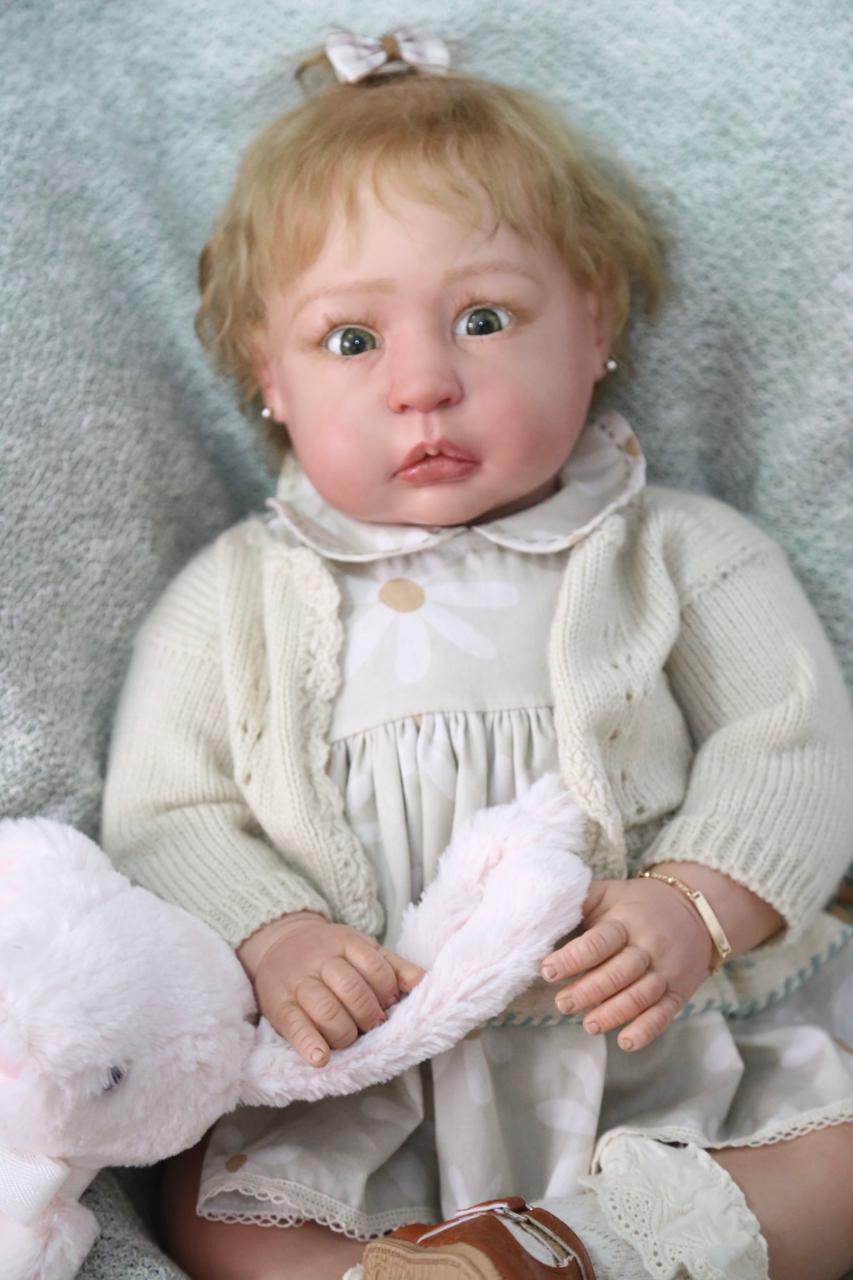 Inspirada na delicadeza e no charme da filha da princesa Kate, Charlotte é uma boneca Reborn única que exala elegância e inocência. Com 63 cm, seus olhos verdes de vidro de altíssima qualidade brilham com realismo, e cada detalhe foi cuidadosamente trabalhado para trazer um toque de magia.